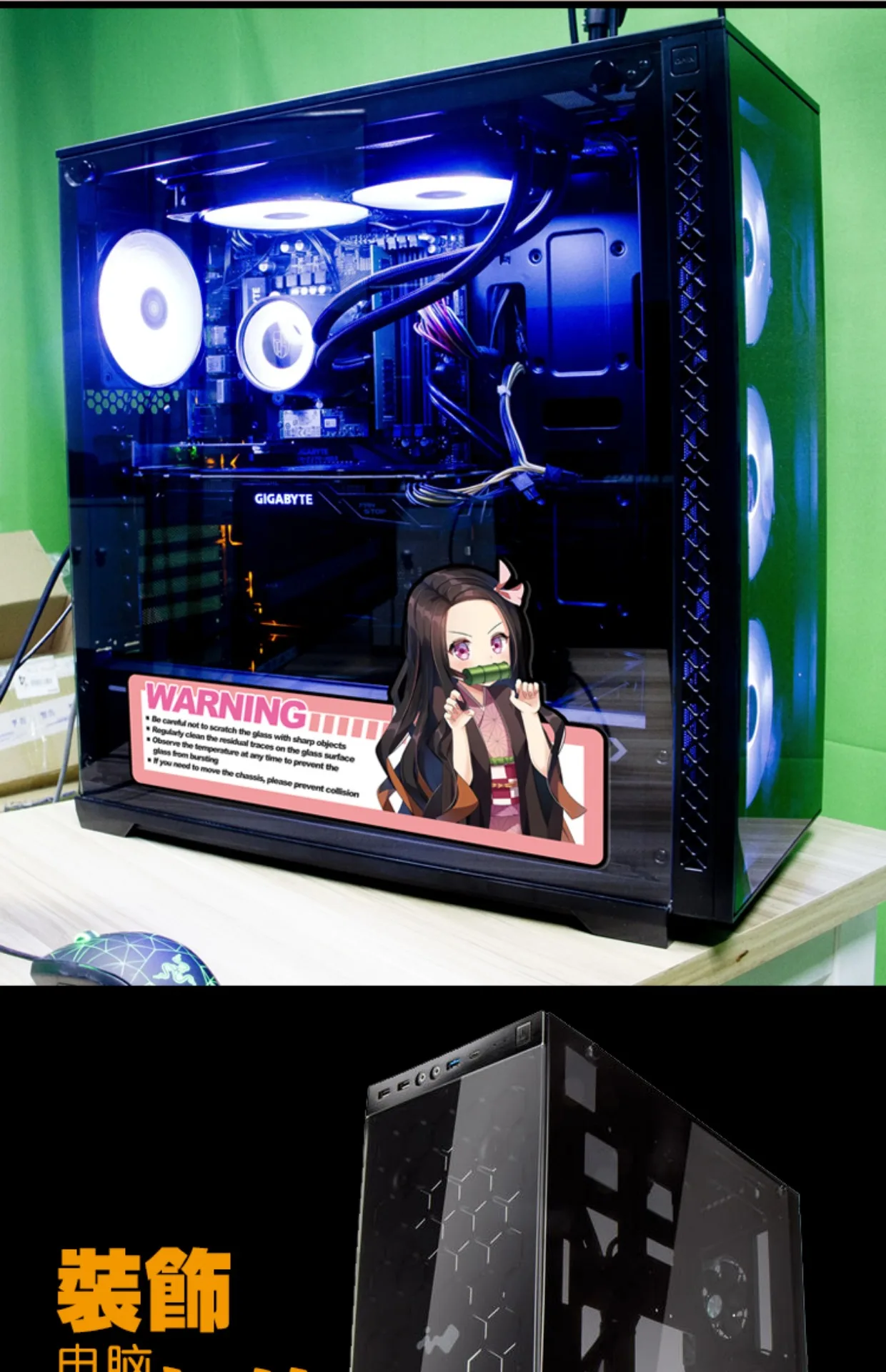 Anime Stickers for PC Case,Cartoon Decor Decals for Computer Chassis,Computer Case Glass Decorate,Easy Removable Waterproof